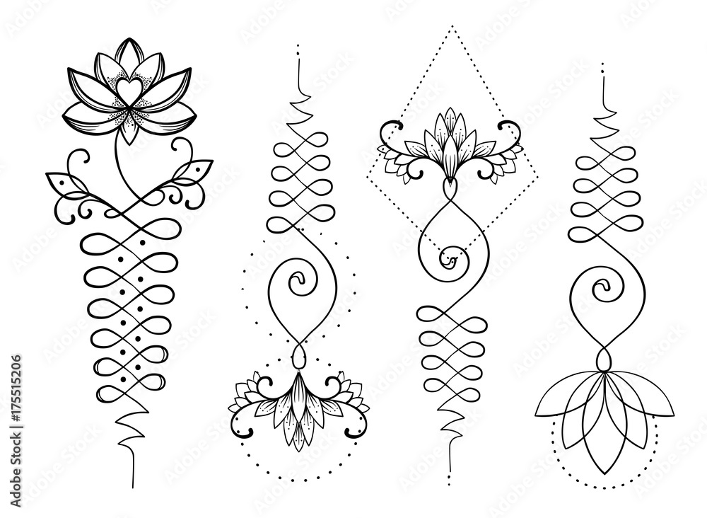 Lotus And Sacred Geometry Unamole Hindu Symbol Of Wisdom And Path To Perfection Set Of Tattoo Flesh Yoga Logo Buddhism Design Boho Print Poster T Shirt Textile Isolated Vector Stock Vektorgrafik Adobe Stock